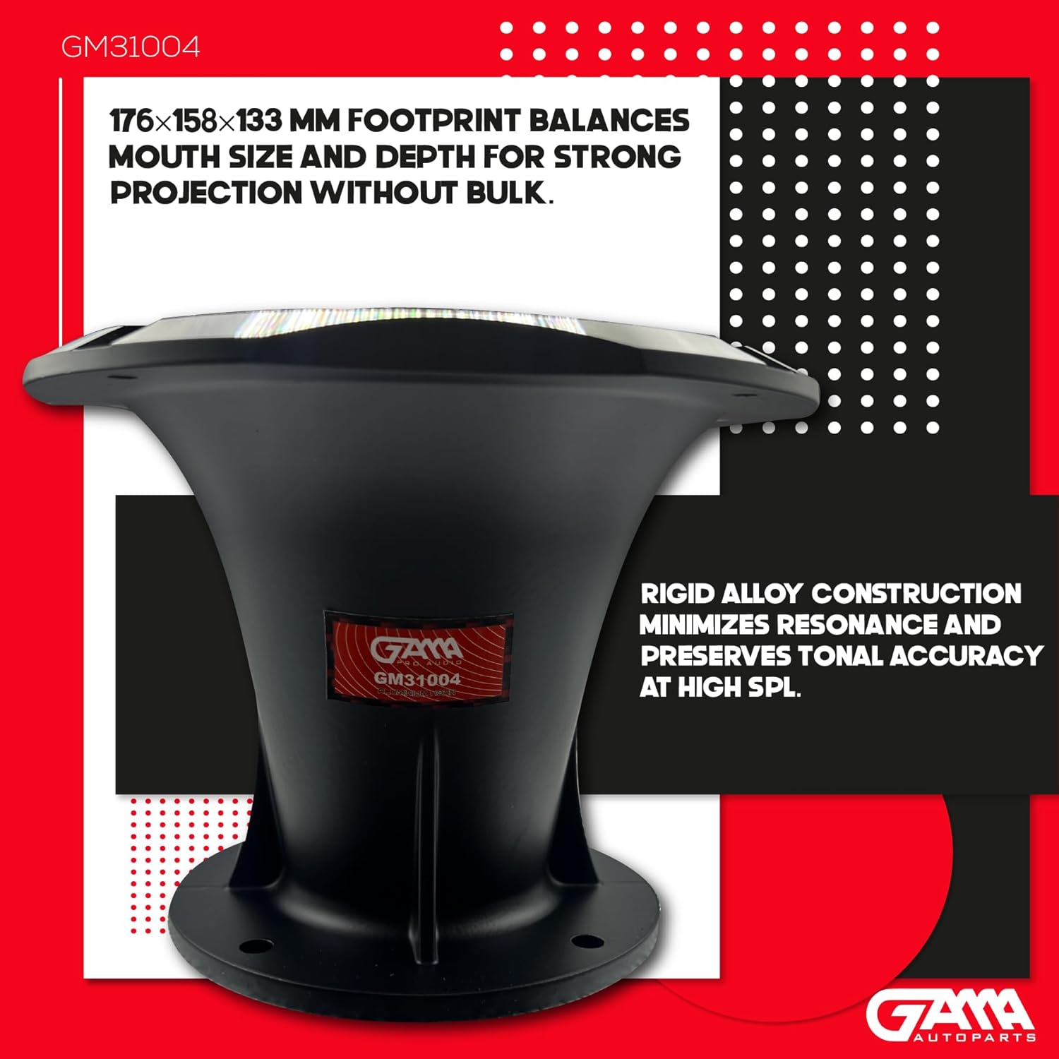 GAMA Audio Aluminum Horn Flare, 2" Throat, 176×158×133 mm, Silver – For 2" Compression Drivers