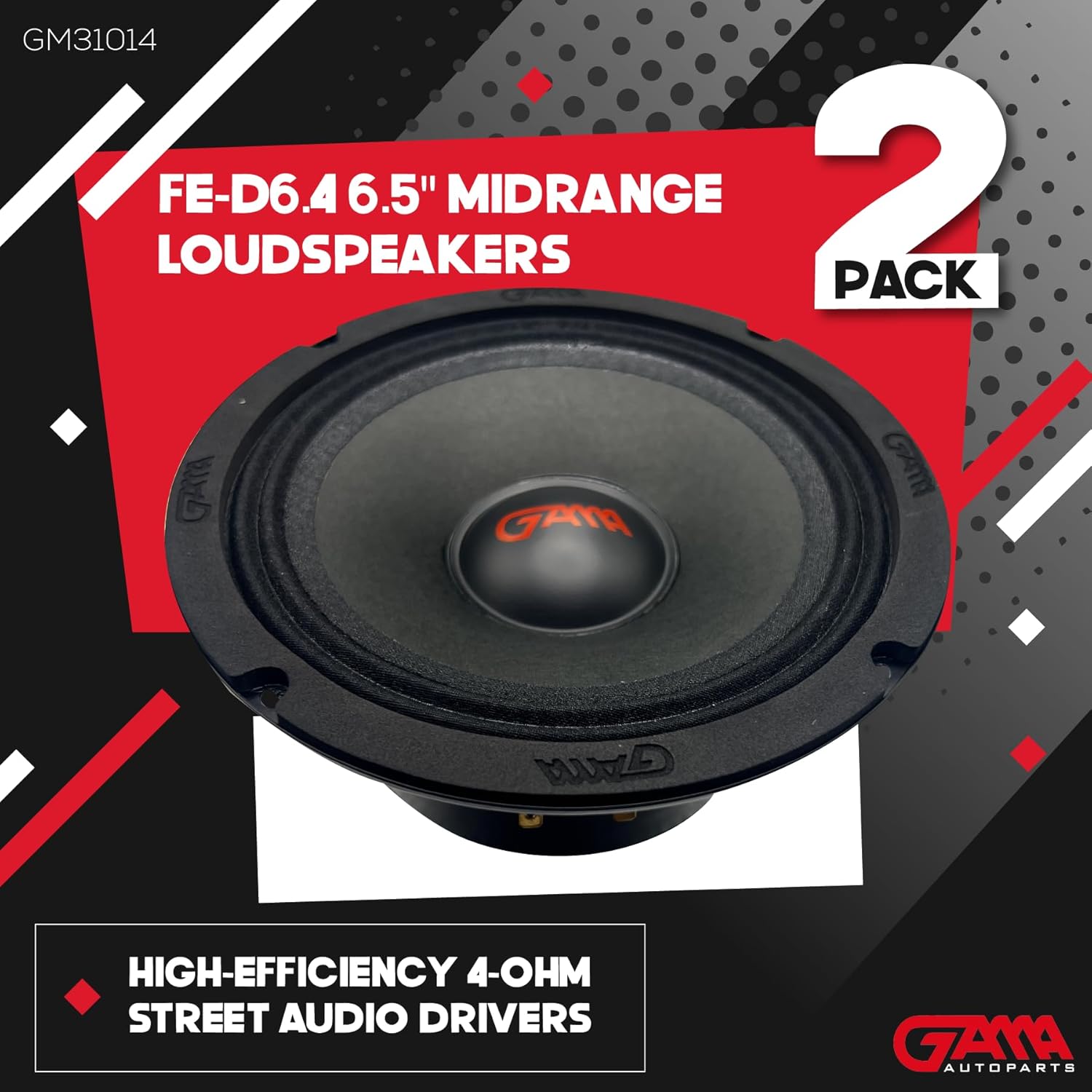 GAMA FE‑D6.4 6.5" Midrange Loudspeakers — High‑Efficiency, 4Ω (2‑Pack)